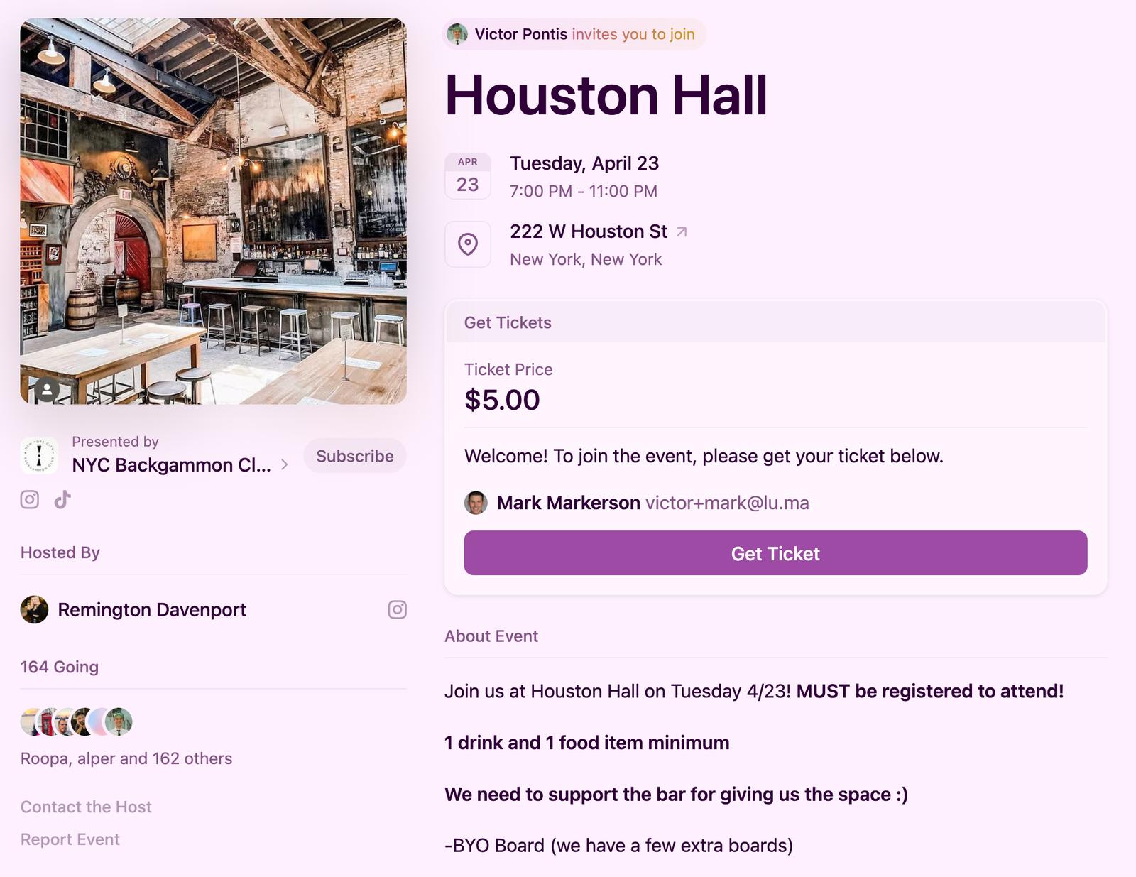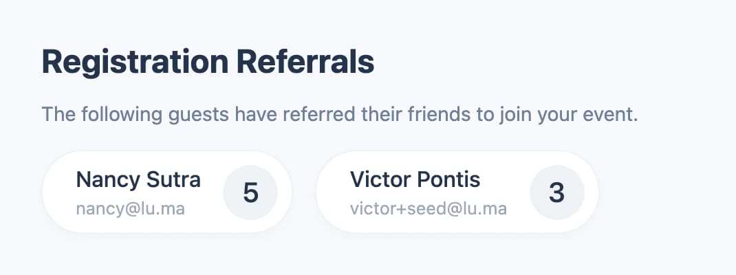 Luma encourages guests to invite their friends and makes it easy for the event host to see who is doing a good job inviting friends to join the event.