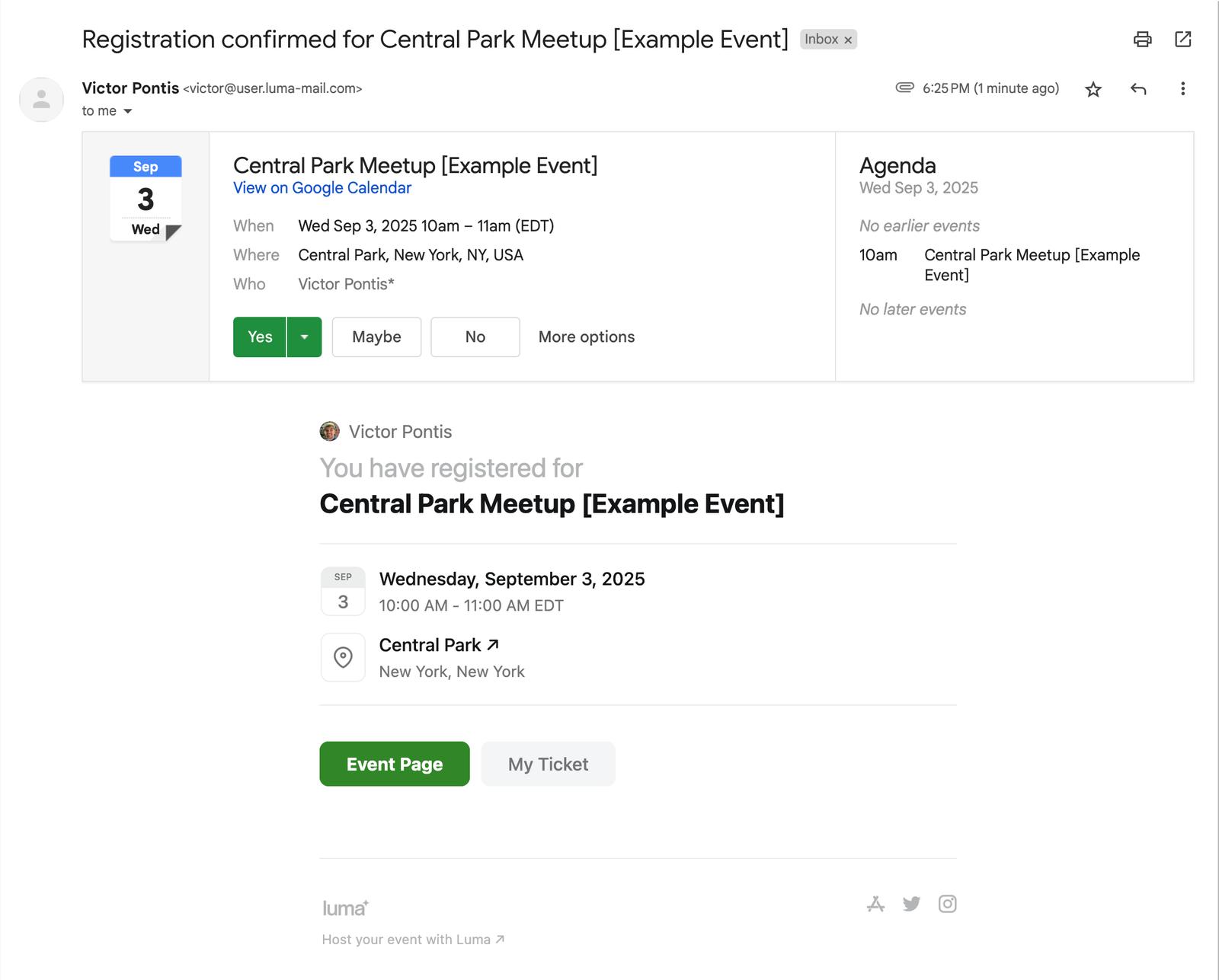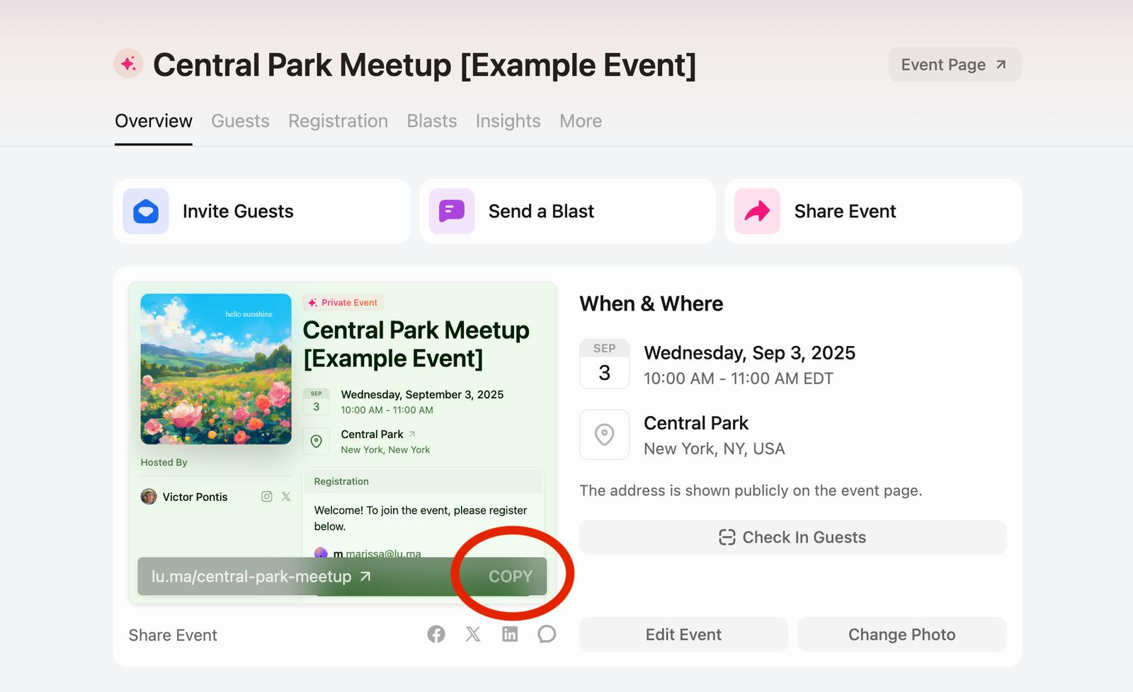 You can see the example event (and register for it) here: luma.com/central-park-meetup
