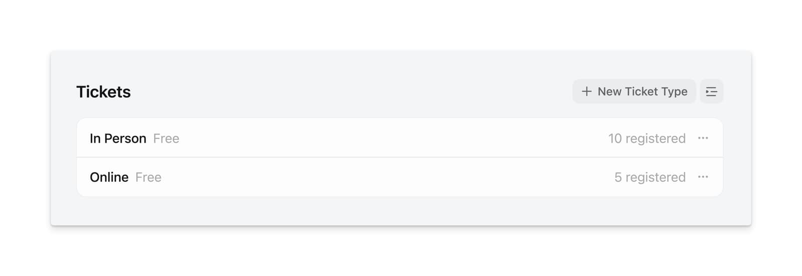 Option 1 — Create Different Ticket Types for Online + In Person