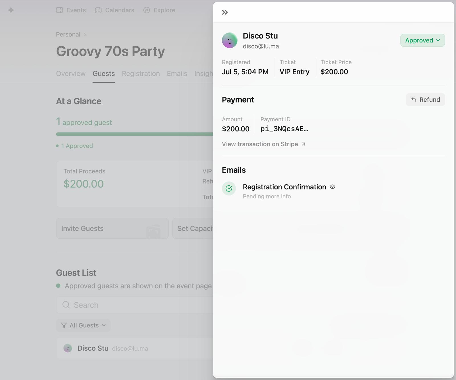 With Luma, you can sell tickets to your events. Every so often, you'll need to issue a refund — if the guest can't make it, accidentally bought two tickets, or any other reason.